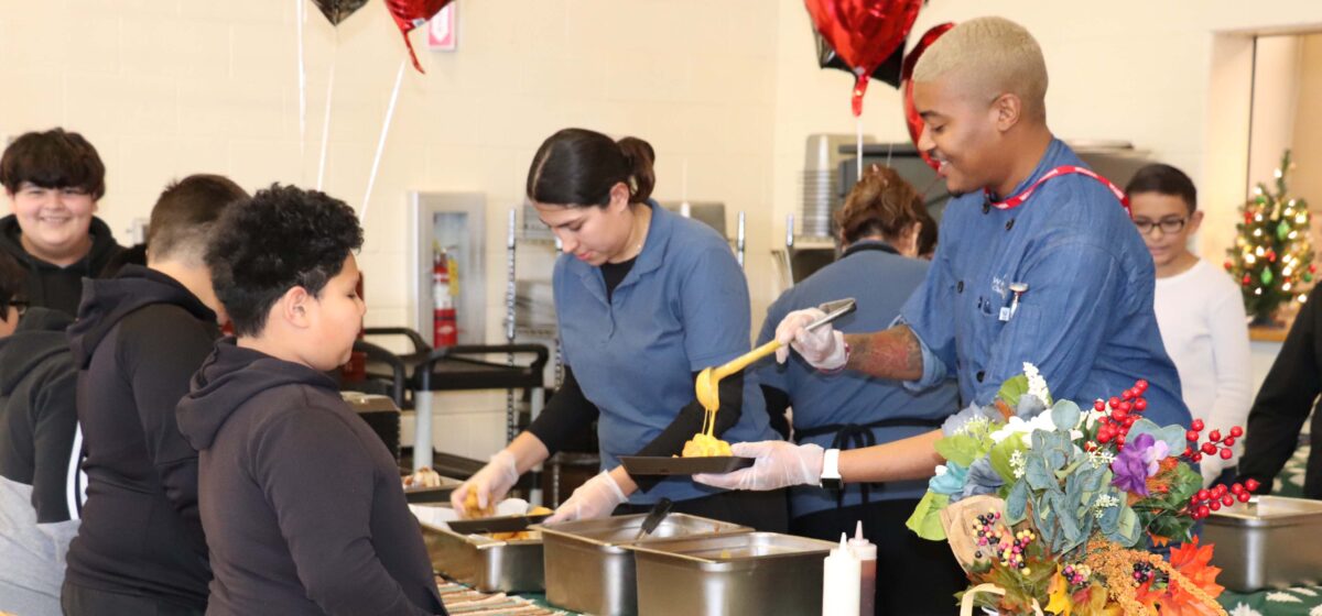 El almuerzo del jueves en Hermes Elementary School fue muy especial, ya que los estudiantes pudieron disfrutar de una demostración culinaria y de un nuevo y delicioso plato, cortesía del chef Cam.
